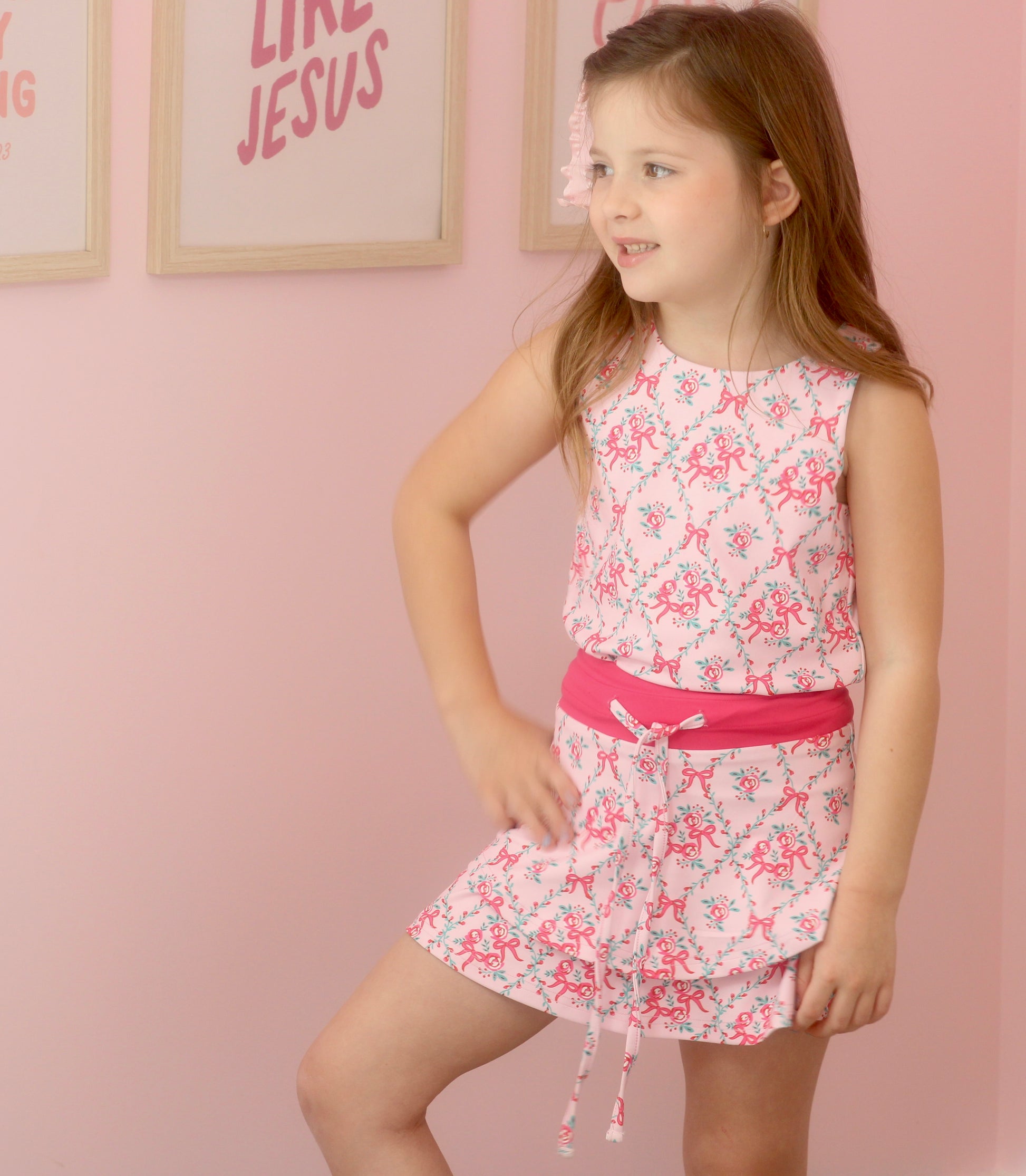 This listing included the two piece athletic set (tank + skort) The matching pullover can be purchased separately