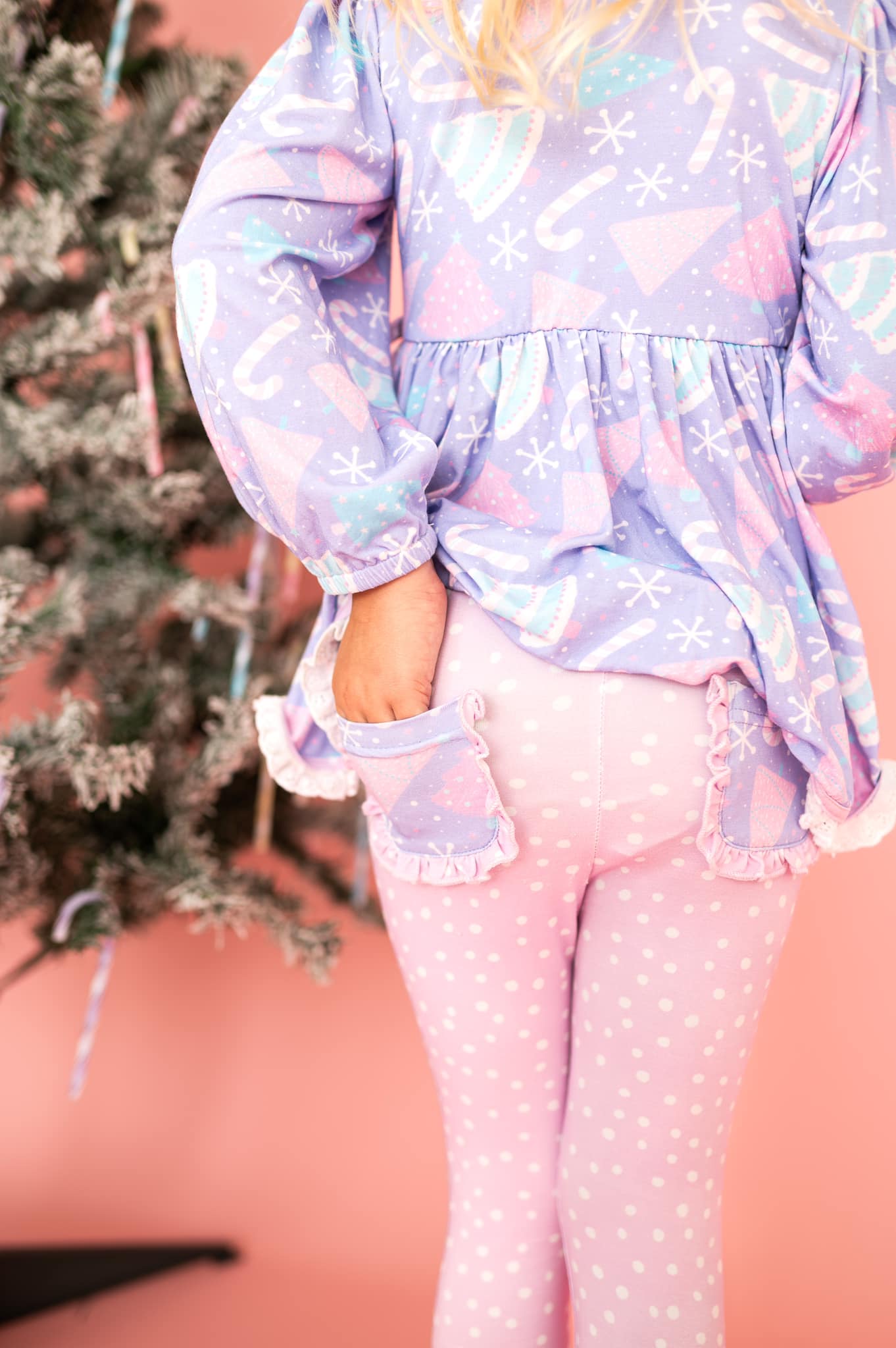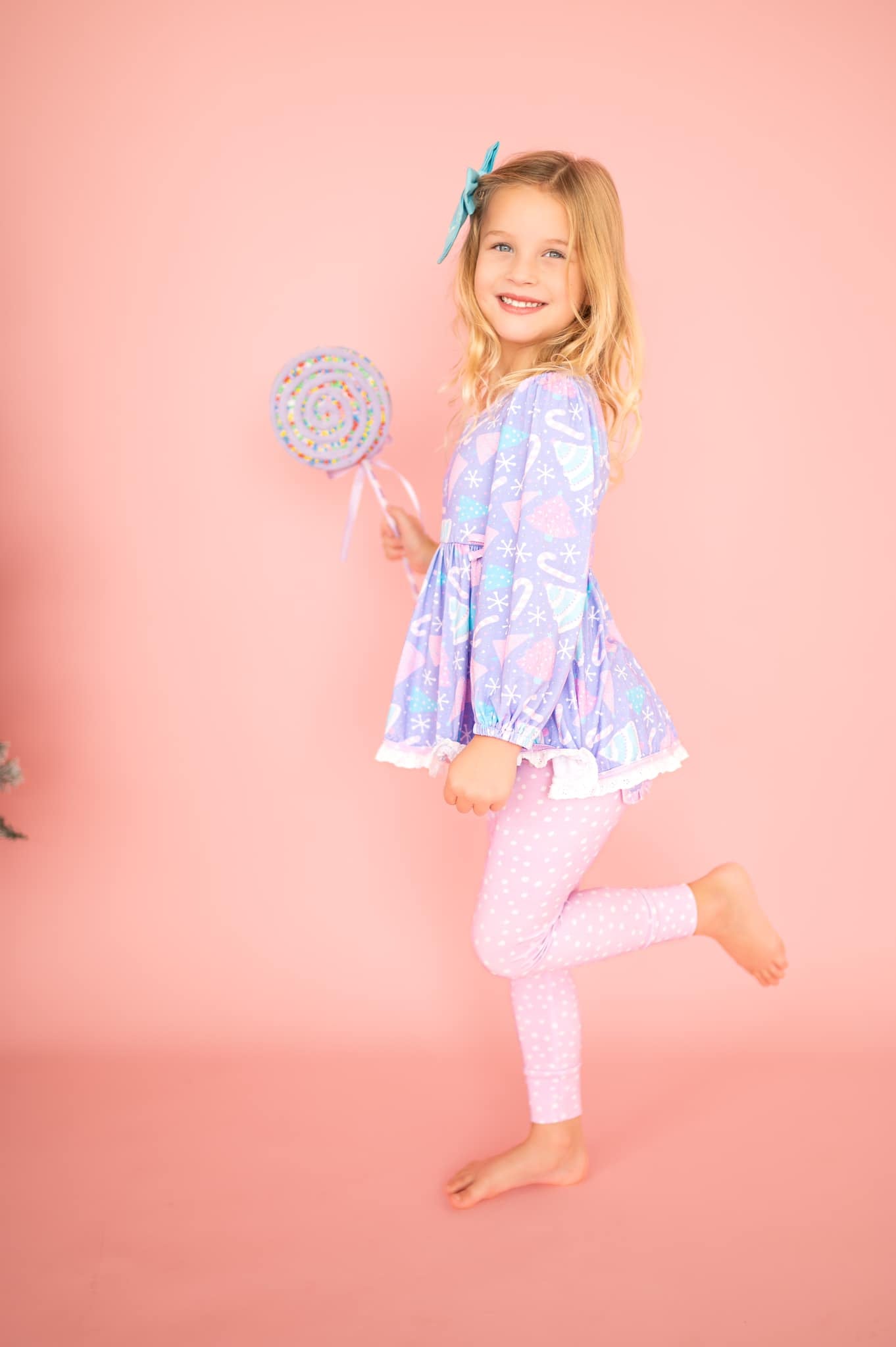 sweet, cozy, and oh-so-magical! Lollyland brings Christmas cheer in soft pastel hues, crafted from our buttery bamboo fabric for the ultimate comfort. Perfect for holiday mornings, movie nights, and every festive moment in between. Available in sizes 6M–16 so sisters (and besties!) can match.